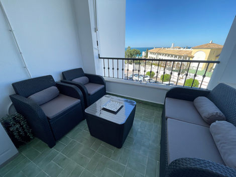 Cuenta con salón comedor con aire climatizado frío-calor y salida a una terraza con mobiliario de exterior y vistas laterales al mar (ver fotos).